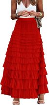 [Stretchy Elastic Waist: This layred tulle maxi skirt features a stretchy elastic waistband for a comfortable fit that can easily be adjusted according to your waist size. Perfect for all-day wear. "Lightweight and Skin Friendly Crafted from high-guality sheer mesh fabric this A line skit is liohtweight and breathable ensuring maximum comfort while wearing it.Youll love how it gently drapes over your body giving you a flattering look." "Versatle and Stylish: Whether youre heading out for a casual day out or attending a party this fiered max skirt is perfect for any occasion. lts flared A line silhouette and long length exude elegance and can be paired with a variety of tops for a fashionable ensemble." "Stunning Sheer Mesh Design: This skirt features sheer mesh layers that add an extra touch of femininity and sophistication to your overal look. Its available in a ranoe of solid colors includino khak. pink black. apricot. and white. alowing you to choose the perfect shade to match your style." Size lnformation: To ensure the perfect fit please refer to the size chart provided in the photo gallery before making your purchase. Choose the size that best matches your measurements for a comfortable and flattering fit.]